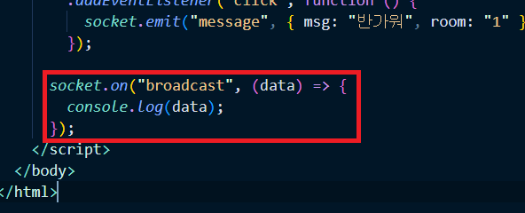 유저가 룸 메세지를 수신하려면 ejs에 script를 다시보자