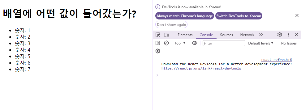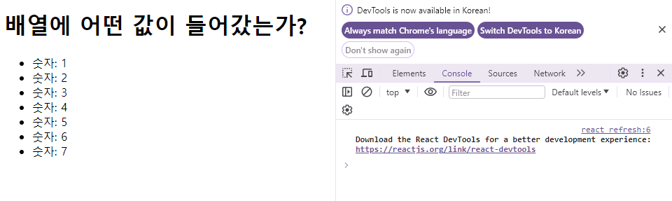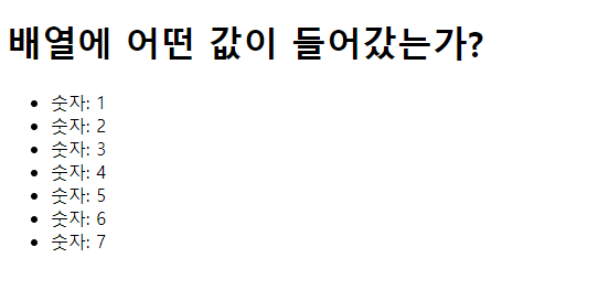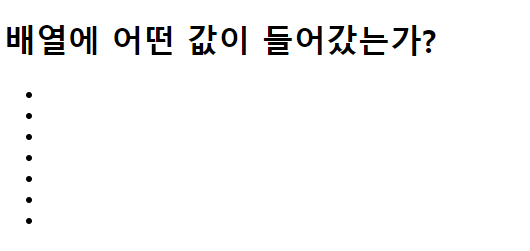 그러면 아래의 이미지처럼 배열의 수에 맞게 li태그가 생성된 모습을 볼 수 있다.
