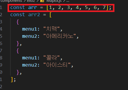 연습을 위해서 우선 상단에 배열을 하나 만든다.