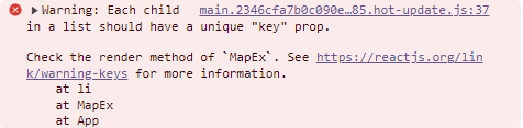 이런 오류가 떠있을 텐데, map함수를 사용할 때에는 반드시 key값을 지정해줘야하기 때문에 발생한 오류이다.