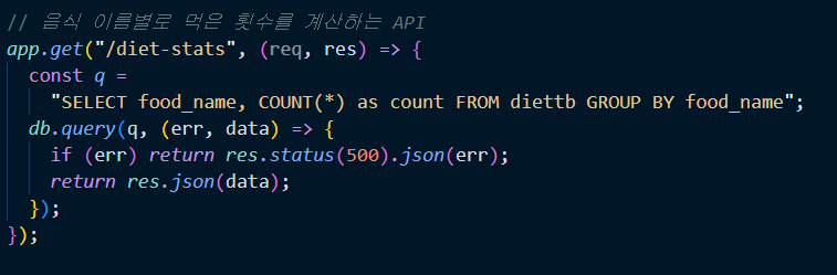 server.js에 작성app.get("/diet-stats", (req, res) => {