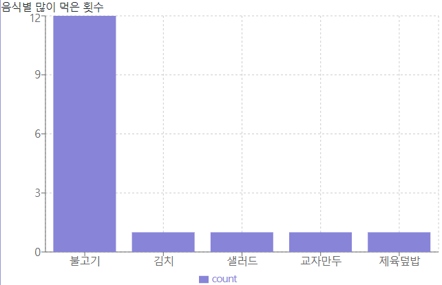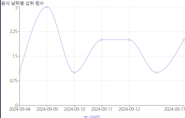 아래는 list에서 선택한 음식 코드에 해당하는 음식을 날짜별로 먹은 횟수를 그래프로 나타낸 코드!