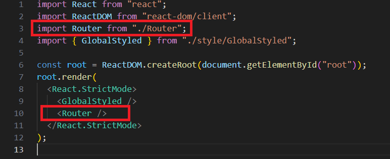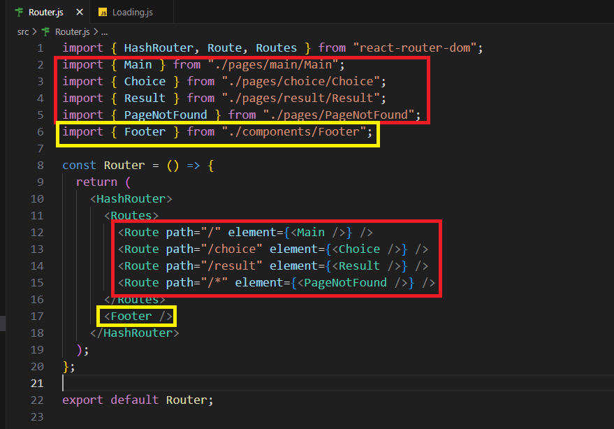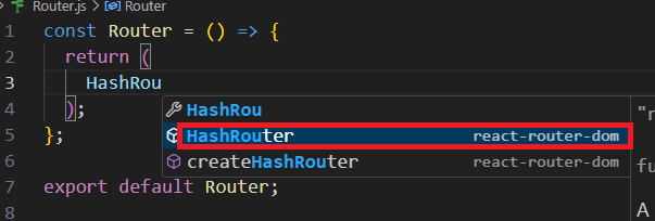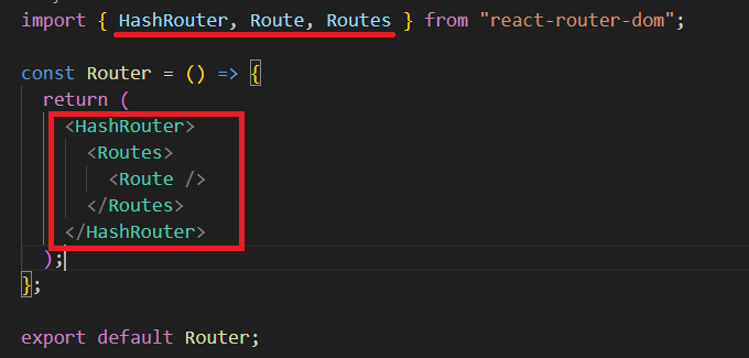 위 사진처럼 react-router-dom에서 HashRouter, Routes, Route import해줌