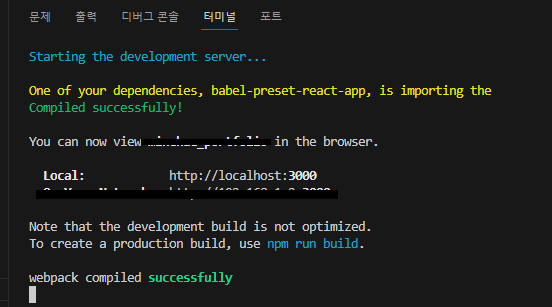 터미널 창에 저렇게 sucessfully라고 적히며 열린 브라우저에
