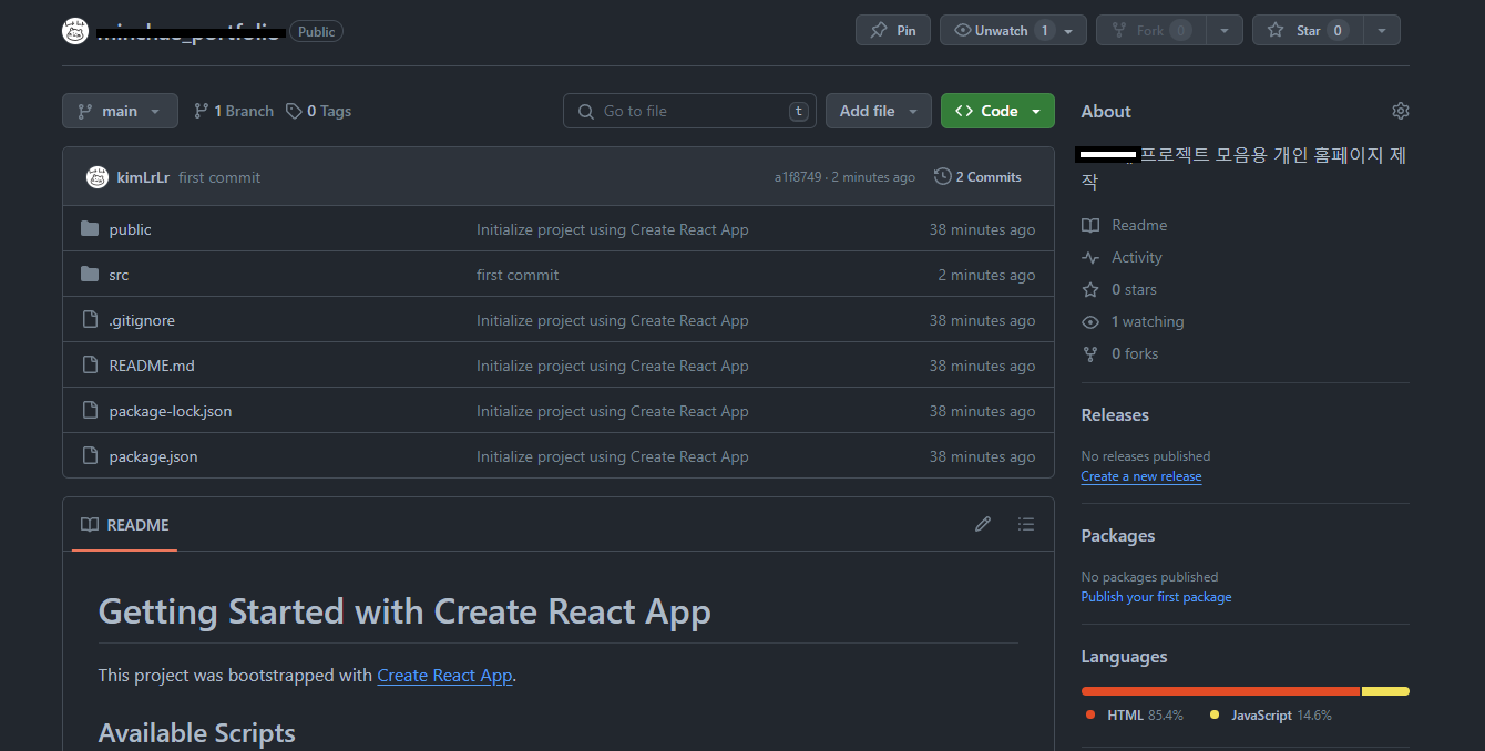 위의 react 프로젝트를 만드는 것까지 끝냈다면, 이제 깃허브와 연동은 누워서 떡먹기보다 쉬울 수 있음