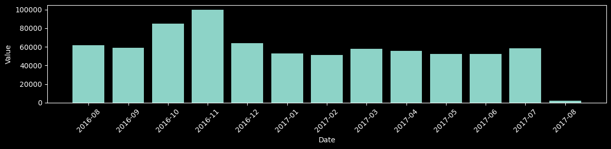 2016년 8월을 시작으로 10월, 11월에 유입된 고객이 가장 많고 이후 2016년 12월부터 다시 2016년 8월달의 고객 유입 수준까지 낮아졌다.