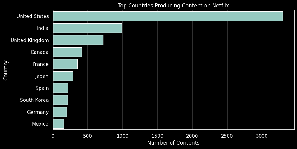 # ▶ 가장 많은 컨텐츠를 생산한 국가 상위 10개를 추출한다.