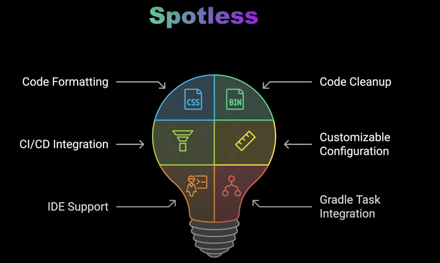 Spotless: 코드 포맷팅 툴로, 코드 스타일 규칙을 자동으로 적용하여 코드베이스의 일관성을 유지하는 데 도움을 준다.