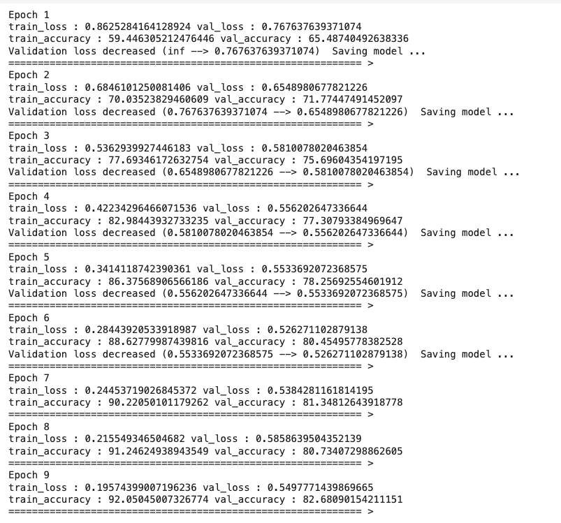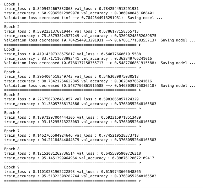print(f'Validation loss decreased ({VALID_LOSS_MIN:.6f} --> {val_loss:.6f}). Saving model ...')