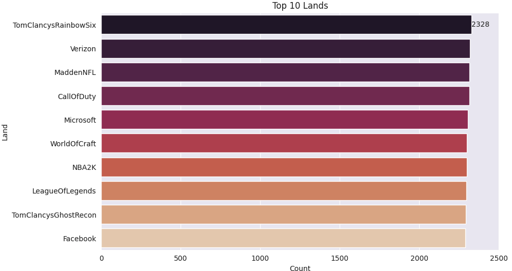 bar = sns.barplot(x=lands.values[:10] ,y=lands.index[:10] , palette='rocket')