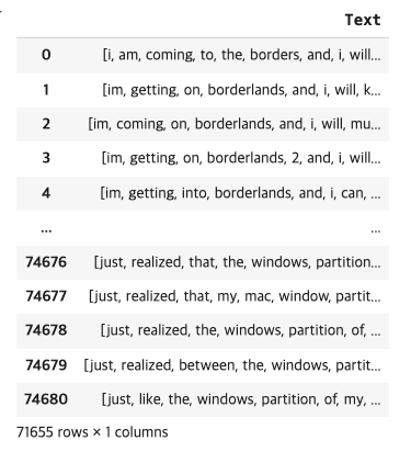 , "im getting on borderlands and i will murder you all ,": 'Text'}, inplace=True)