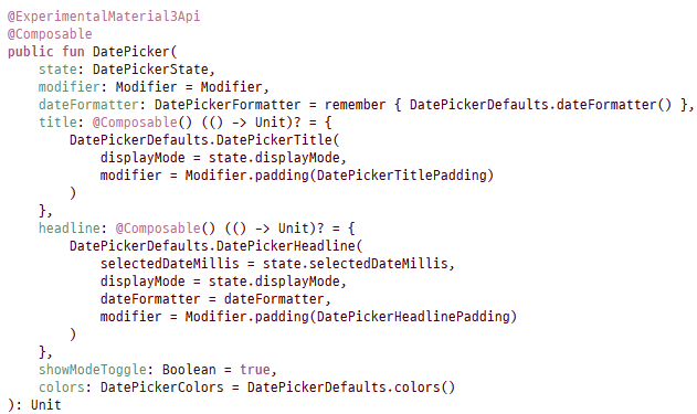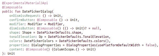 DatePickerDialog는 DatePicker를 다이얼로그로 띄워주기 위한 컴포저블입니다.