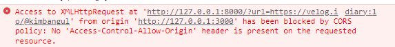포트 번호까지 구분하기 때문에, http://127.0.0.1:3000 에서 http://localhost:8000 로 요청을 보낼 때도 CORS로 간주합니다.