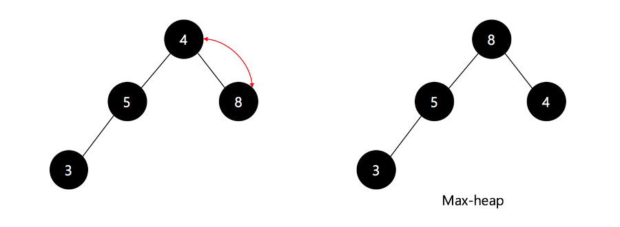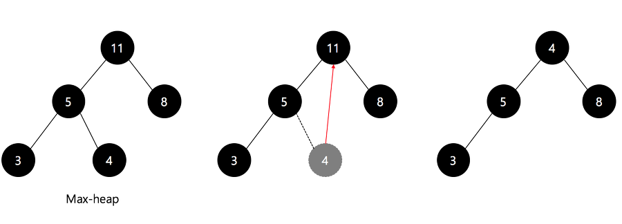 arr[i], arr[0] = arr[0], arr[i] # ์ต๋๊ฐ(๋ฃจํธ)์ ๋ง์ง๋ง ์์๋ฅผ ๊ตํ