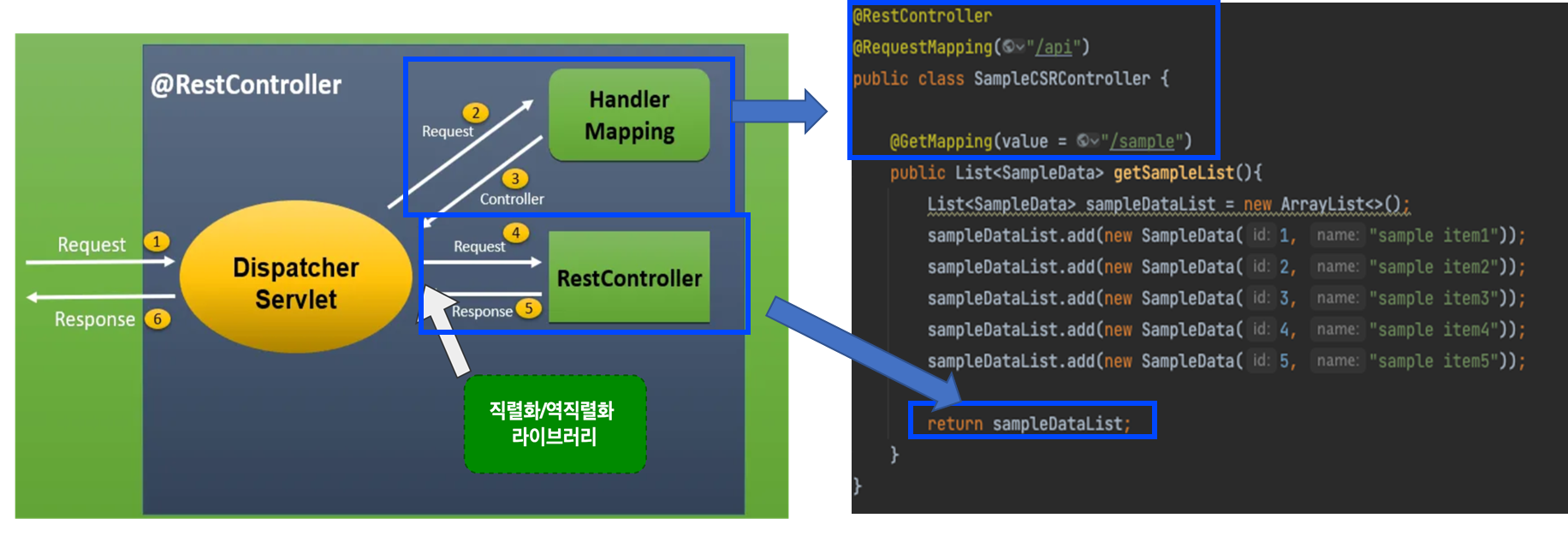 디스패치 서블릿 CSR 컨트롤러 내부 동작 흐름
