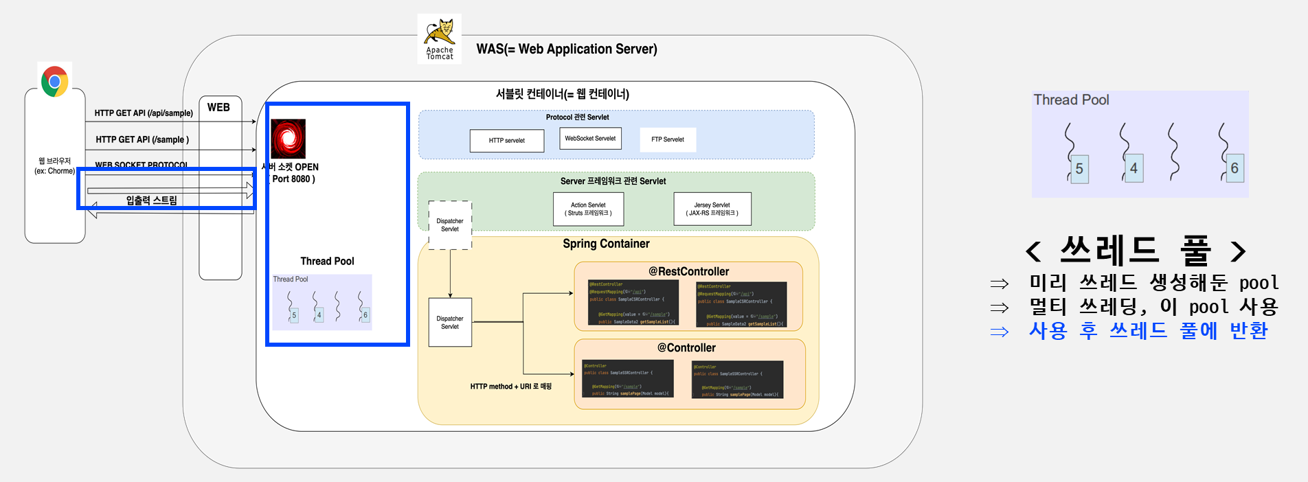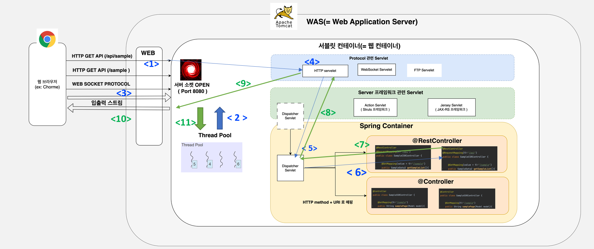 WAS 부터 디스패치 서블릿 내부동작 흐름을 파악하고 스프링 개발 의미 이해하자.