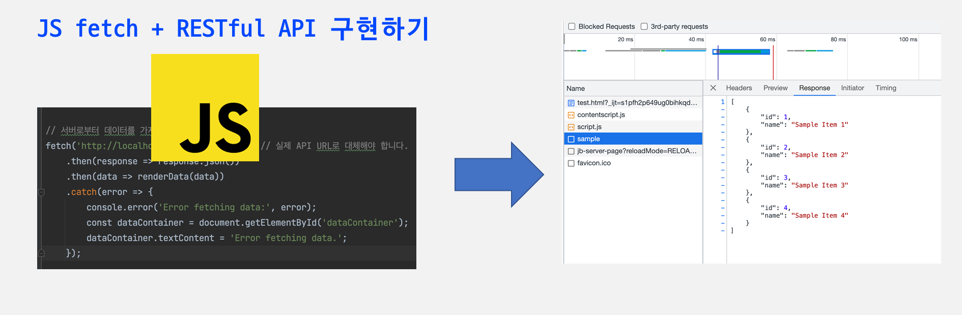로컬 백엔드 서버에 데이터를 요청하는 JS 문 구현한다.