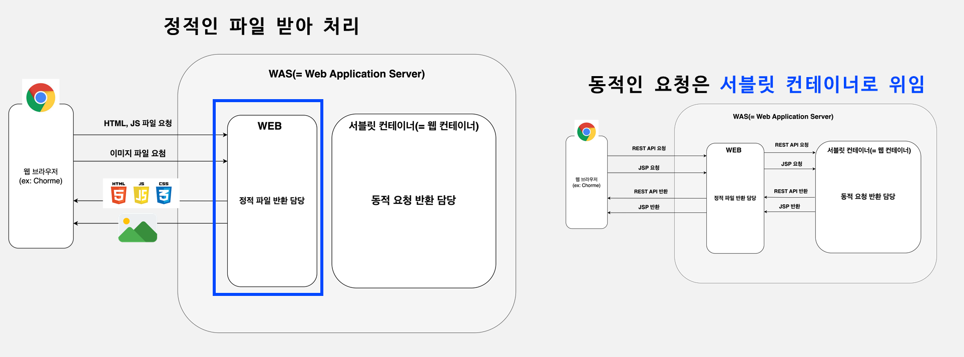 WAS: Clinet 요청(특히, HTTP)를 받아 의미 있는 웹 애플리케이션 실행하는 서버