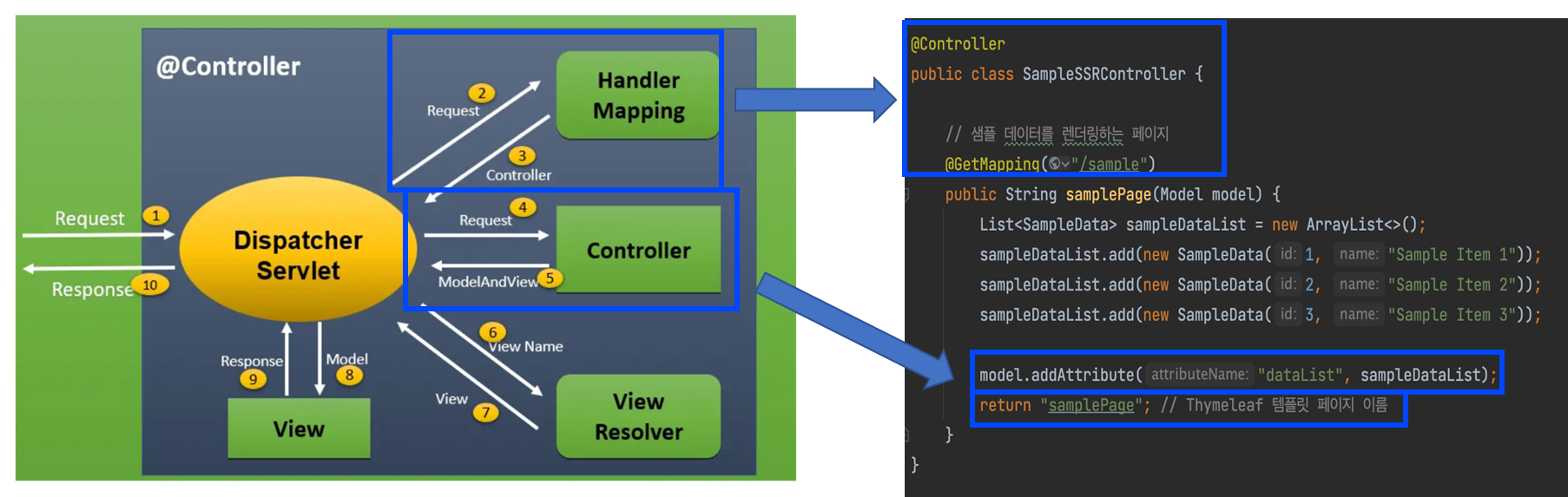 디스패치 서블릿 SSR 컨트롤러 내부 동작 흐름