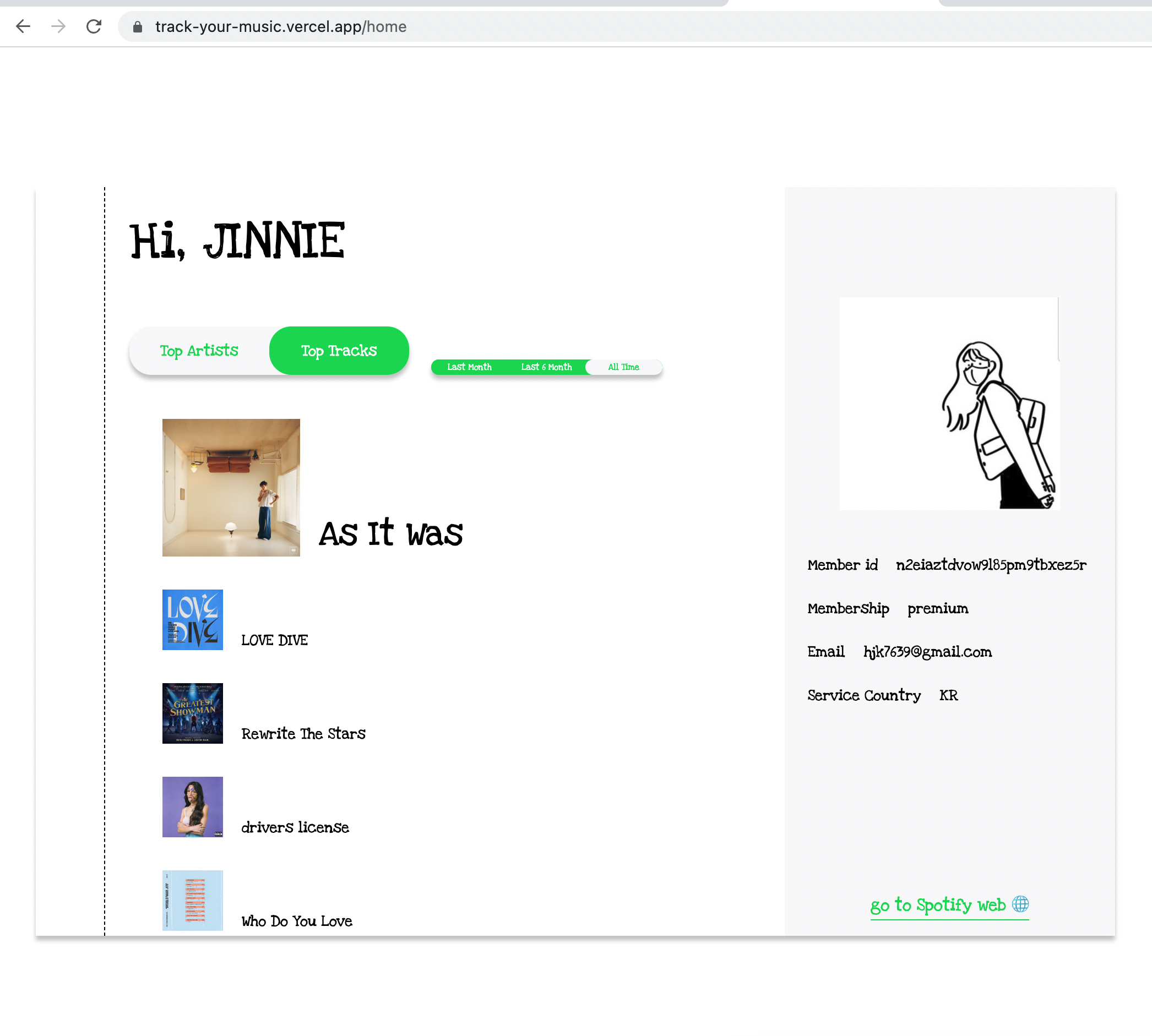서비스 배포 완료: https://track-your-music.vercel.app/ (현재 닫아둔 상태입니다.)
