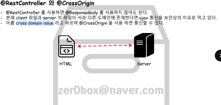 □ cross domain issue - [CORS] : 서로 다른 도메인(서버)에 있는 자바스크립트와 서버 간의 통신을 제한한다.