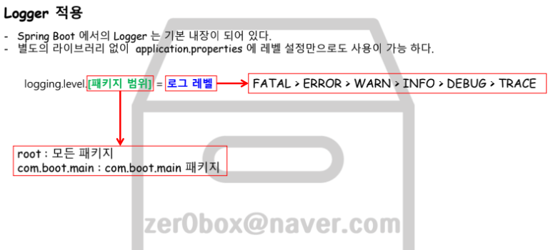 □ log레벨을 info로 잡았기 때문에 info 보다 덜 중요한 debug,trace 등은 찍히지 않는다.
