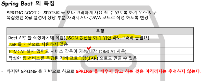SpringBoot 의 특징 3가지 (총 5가지 있습니다.)