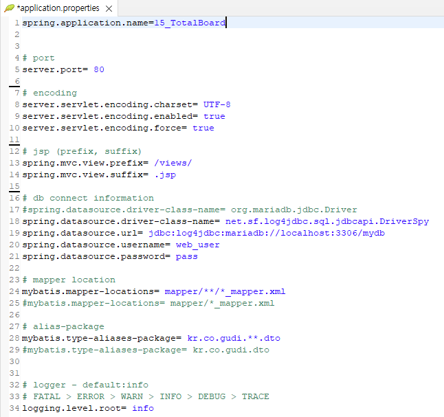 □ spring boot 에서는 application.properties 하나로 해결할 수 있음