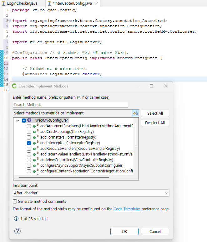@Autowired LoginChecker checker; // 인터셉터에 등록 할 클래스를 가져온다.
