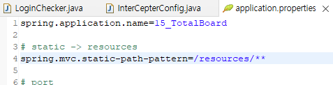 □ application.properties에서 static패턴을 resources/** 로 패턴변경