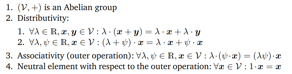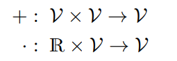 실수인 벡터 공간 은 아래 두 연산을 포함하는 집합 V이다.