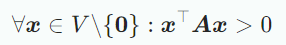 위를 만족하는 symmetric matrix 를 symmetric, positive definite라고 하며, 항등식 가 성립하면, symmetric, positive semidefinite라고 한다.
