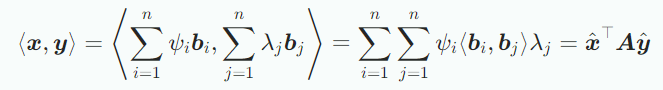 또한 Inner product의 bilinearlity 때문에 다음이 성립한다.