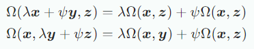 bilinear mapping 는 두 인자에 대한 mapping 이며, 각 인자에 대해 linear한다. 와 에 대해 다음이 성립한다.