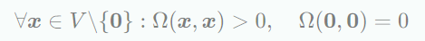 모든 에서 라면 인자들의 순서가 상관이 없다는 뜻이고 symmertic이라고 부른다. 또한 아래 정의가 성립하면 positive definite라고 한다.