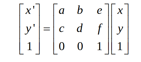 affine transformation matrix는 다음과 같이 나타낼 수 있다.