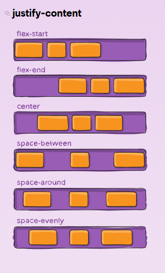 5. justify-content: flex-start; = 중심축에서 item들을 어떻게 배치할 건지
