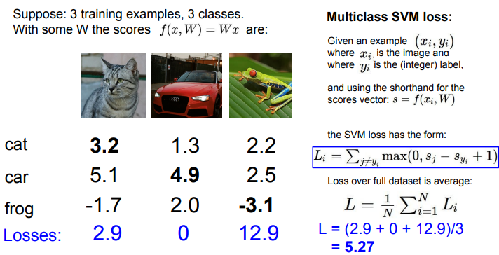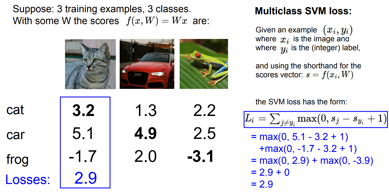 Multi-class SVM loss의 계산 과정은 다음과 같다.