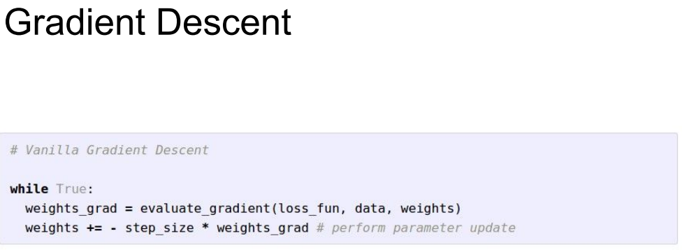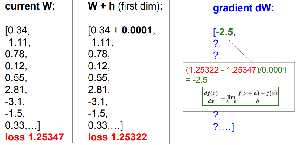 W의 모든 원소를 순회하는 것이 아니라 gradient를 나타내는 식을 찾아내고 한 번에 를 계산하는 방법.