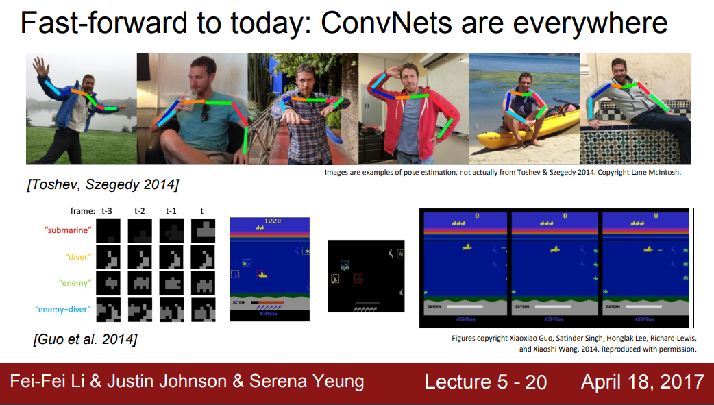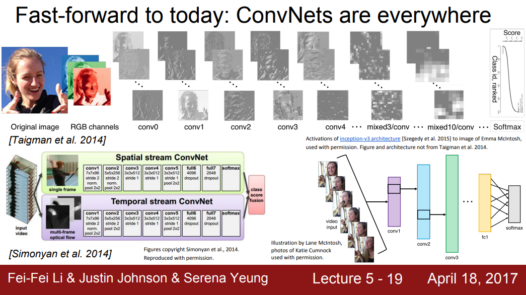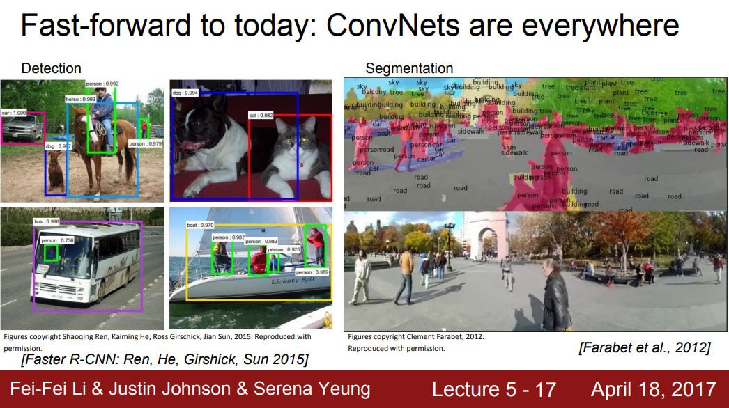 - in Detection : ConvNet을 사용하여 영상 내 객체의 위치를 찾아내고 네모박스를 정확하게 그린다.