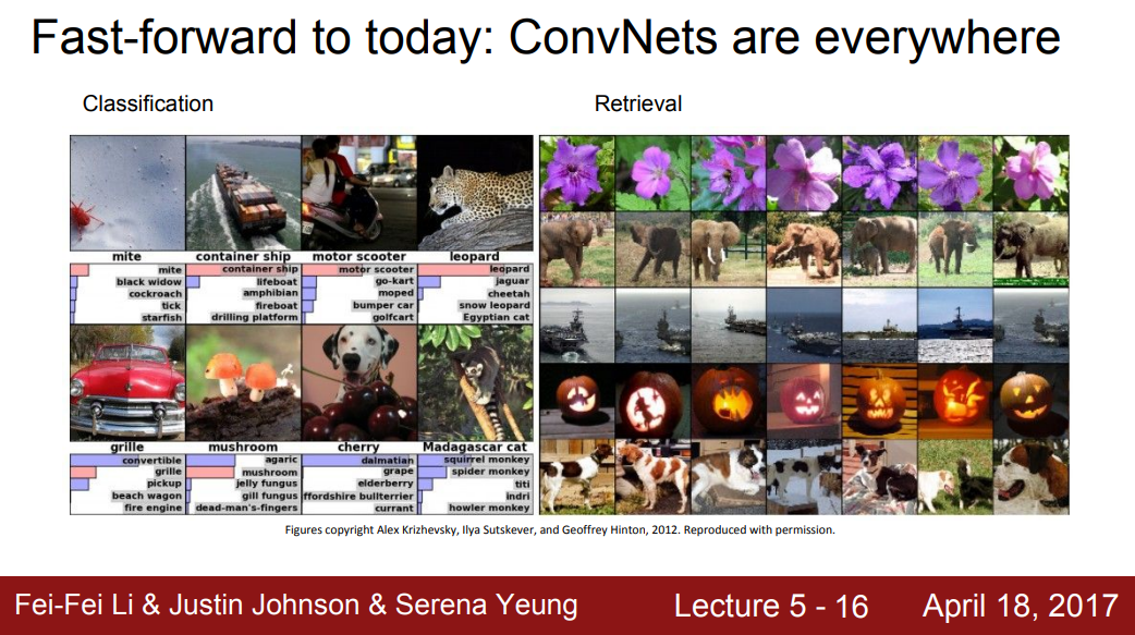 - ConvNets은 널리 사용되며, AlexNet의 ImageNet 데이터 분류 결과를 살펴보자면 이미지 검색에 우수한 성능을 보이고 있다.