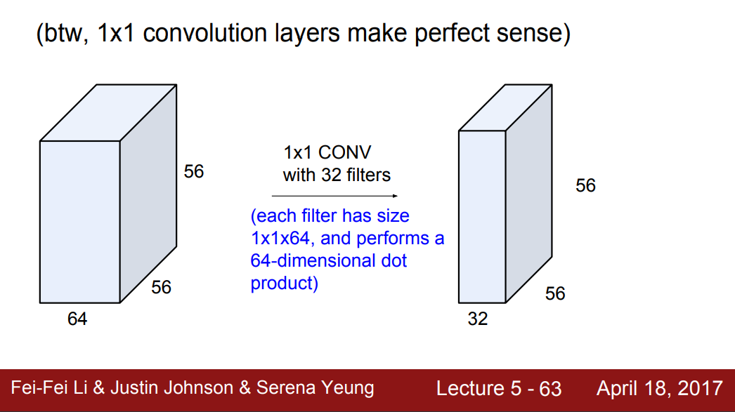 - 즉, Convolution Layer는 Spatial Relation를 고려했다면 1x1 Spatial Relation는 한 픽셀만 고려하기 때문에 차원 축소를 위해 활용할 수 있다.