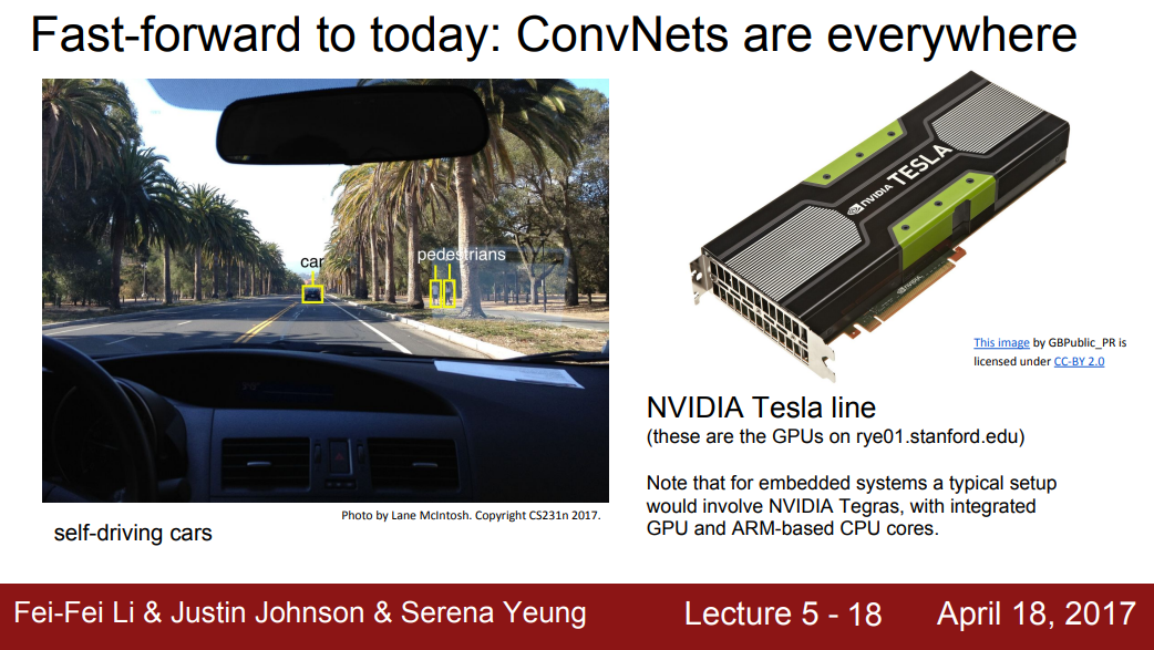 - in self-driving cars : 대부분의 작업은 GPU가 수행할 수 있으며, 병렬처리를 통하여 ConvNet을 효과적으로 훈련하고 실행 가능하다.