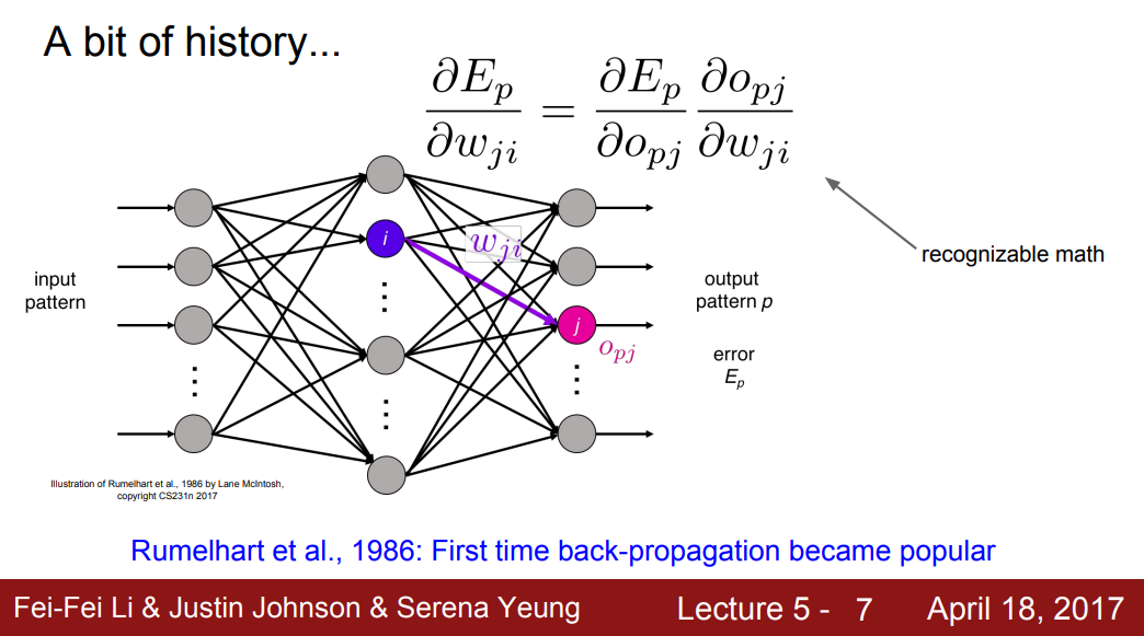 - Rumelhart et al., 1986: First time back-propagation became popular