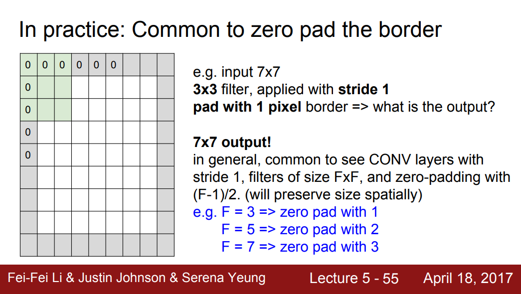 - Zero Padding이란 양쪽에 0의 값을 가지는 픽셀을 추가하여 image의 크기를 늘려주는 방식이다.
