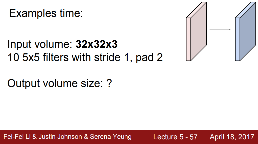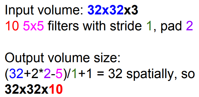 - (32+2∗2−5)/1+1=32로 Height, Width의 값은 동일하다. 이때 필터가 10개이므로 32x32x10의 결과가 나온다.