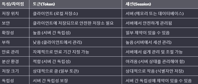 보다 분산된 시스템에서는 토큰을, 보안이 중요한 경우나 서버 부하에 민감한 상황에서는 세션을 선택하는 것이 일반적임.