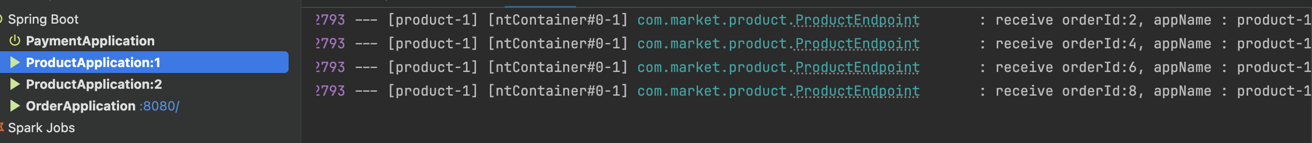 테스트를 위해 ProductApplication을 2개로 소비를 테스트해보면