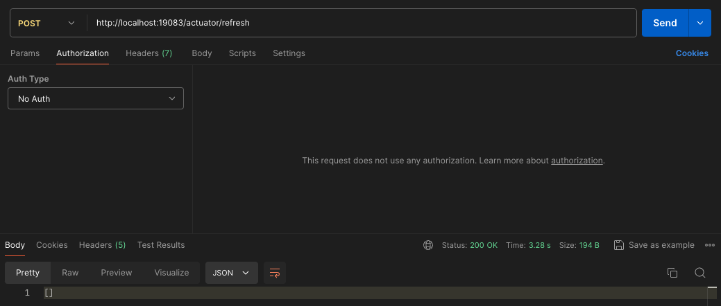 /actuator/refresh 엔드포인트를 사용할 수 있습니다.설정 갱신 절차