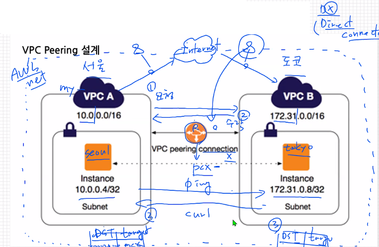 서울리전 안의 vpc에서 도쿄 vpc에 연결
